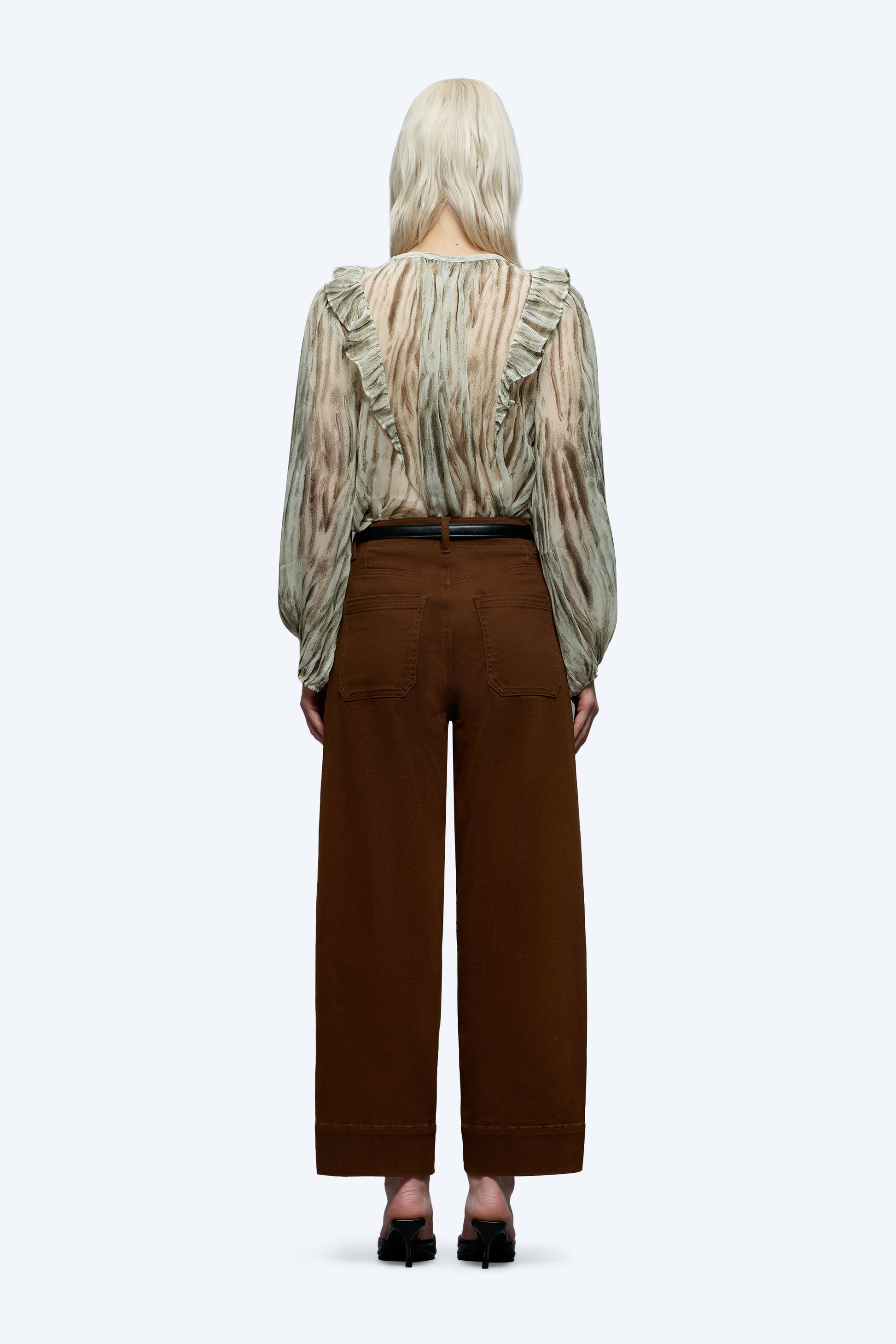 HIGH WAISTED BARREL LOOSE FIT PANTS WITH SIDE POCKET OSOX006 BROWN
