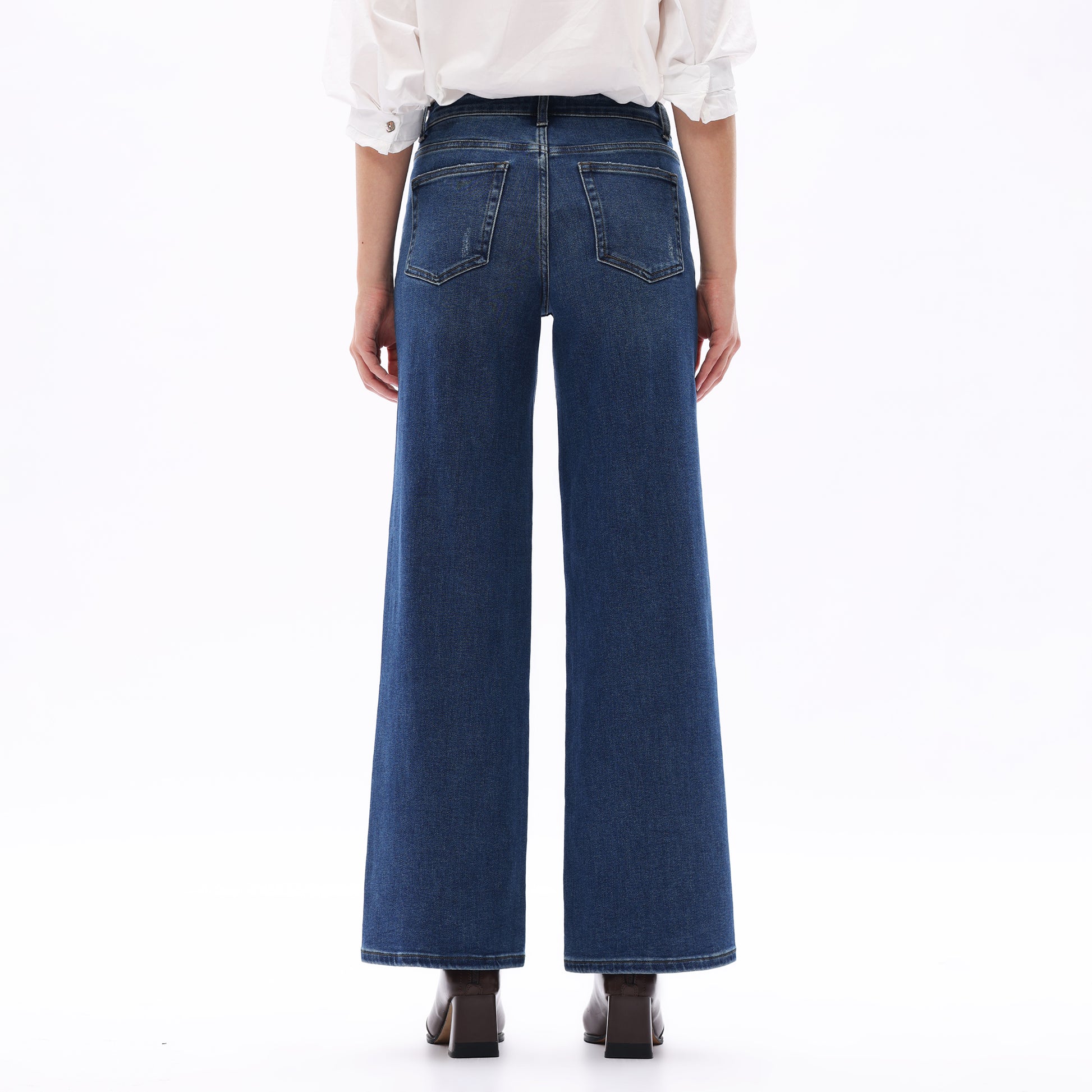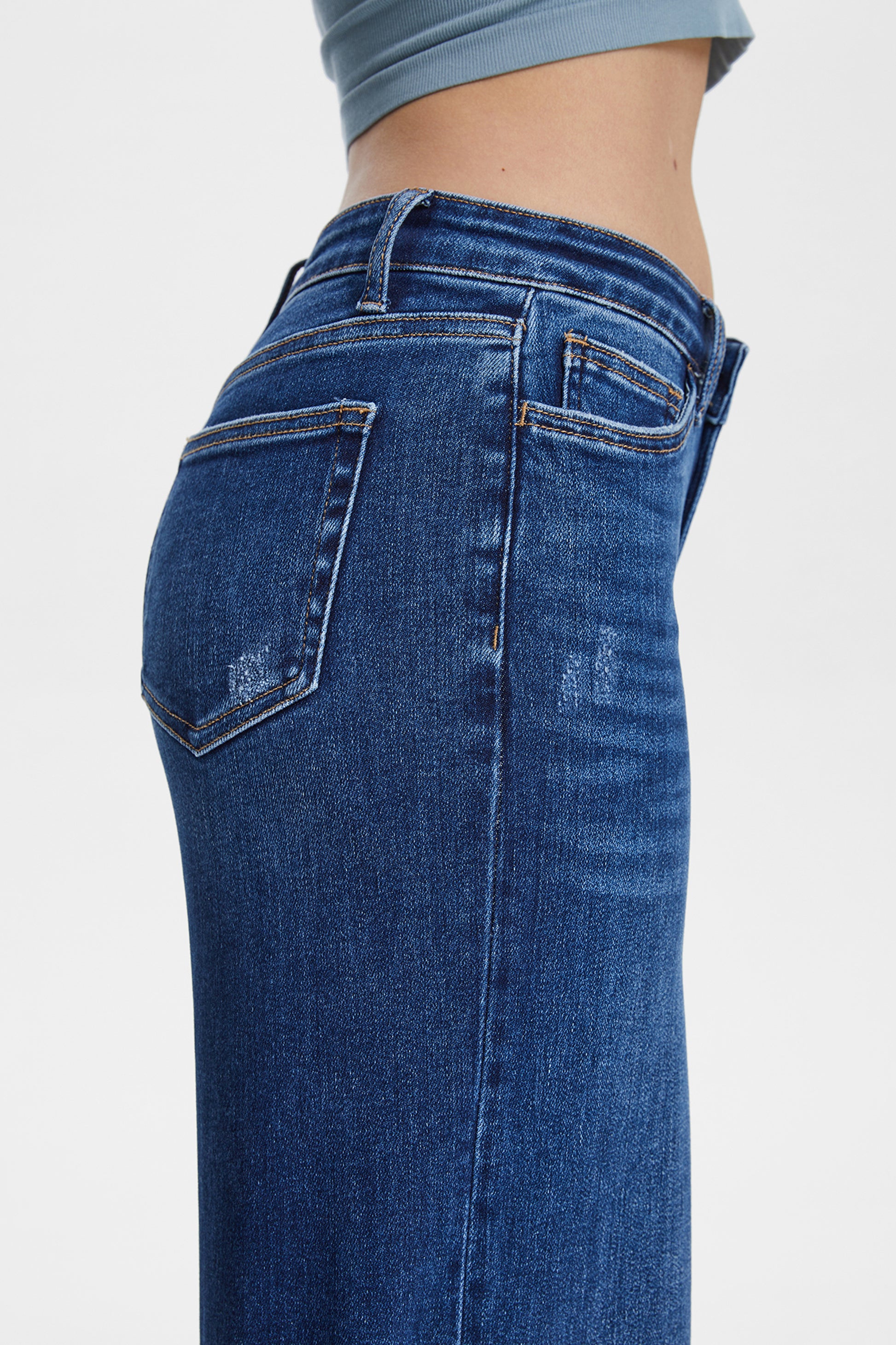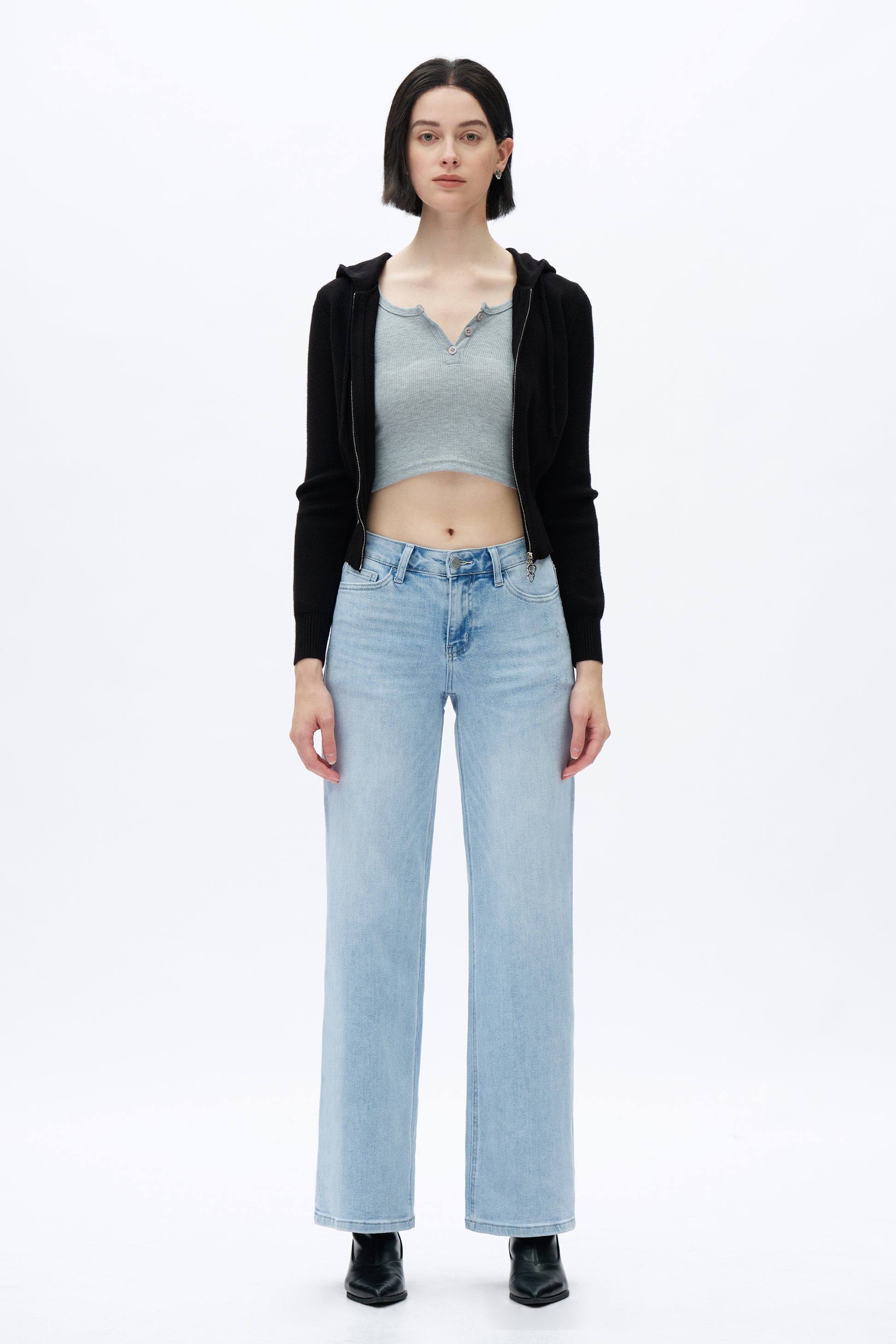 Elevate your everyday look with these Mid Rise Wide Leg Denim Jeans - a mid-rise fit meets flowy wide legs, featuring a specially designed BBL cut to enhance your curves and lift your backside, offering timeless comfort and versatile style for any outfit.
