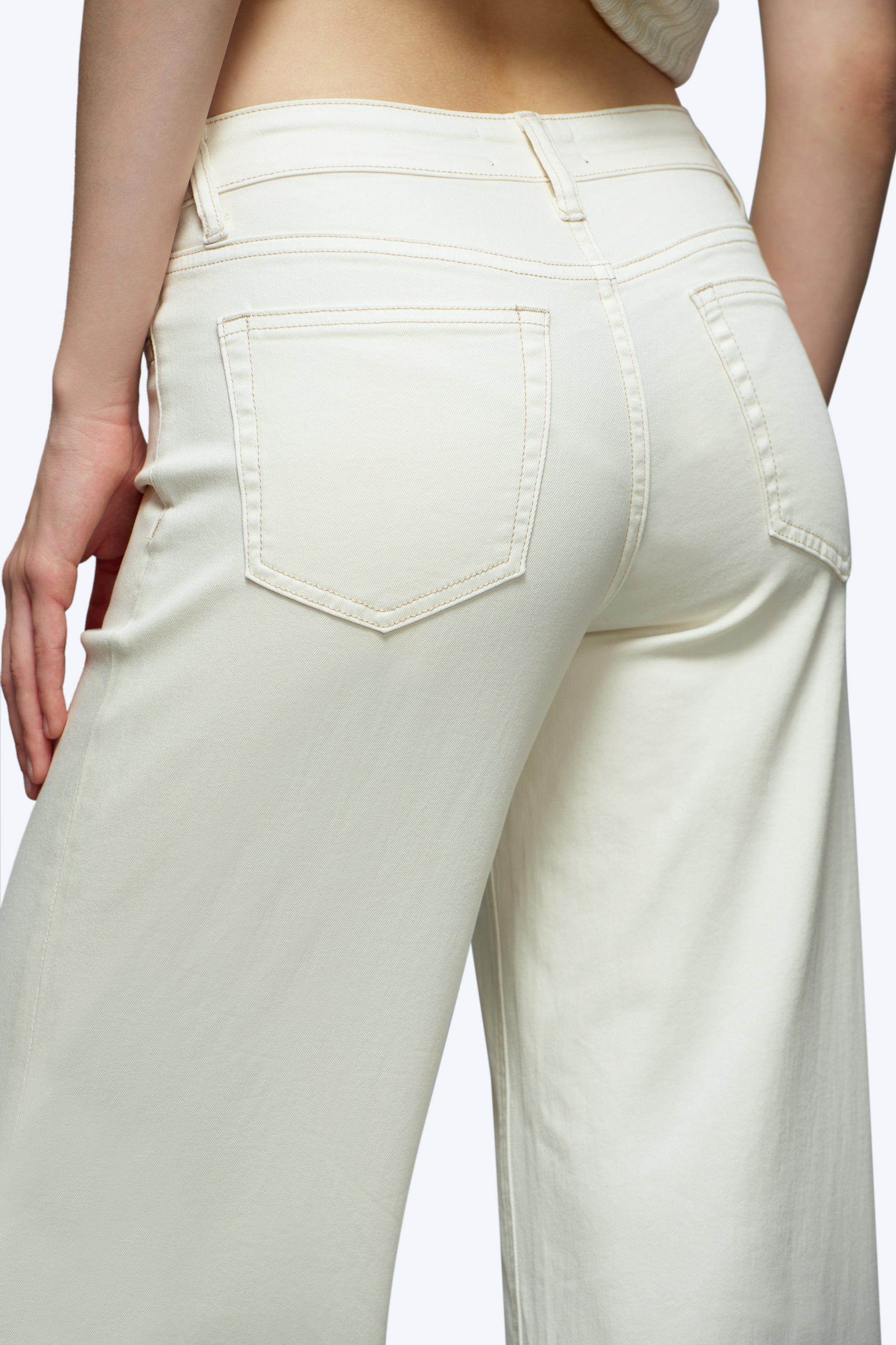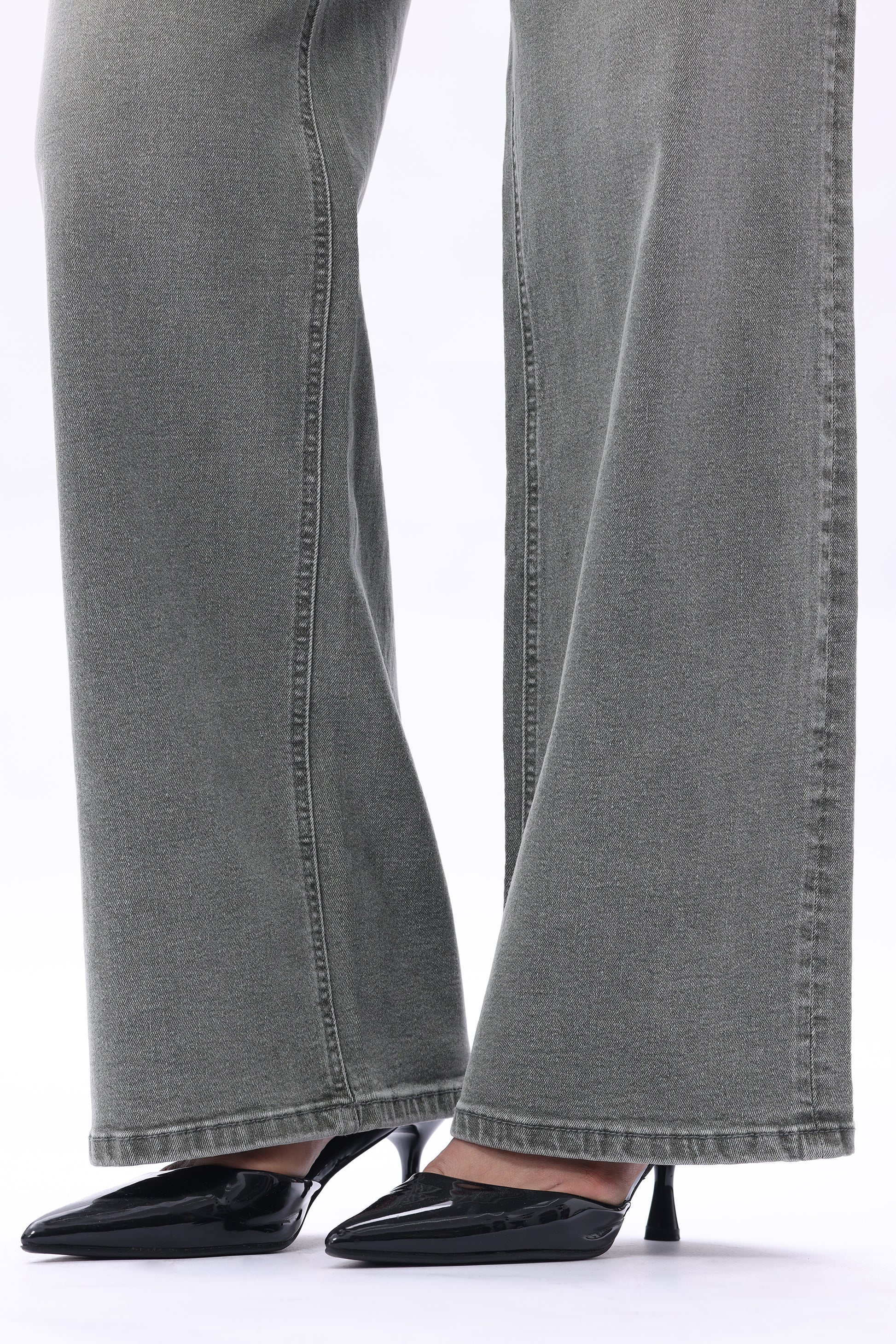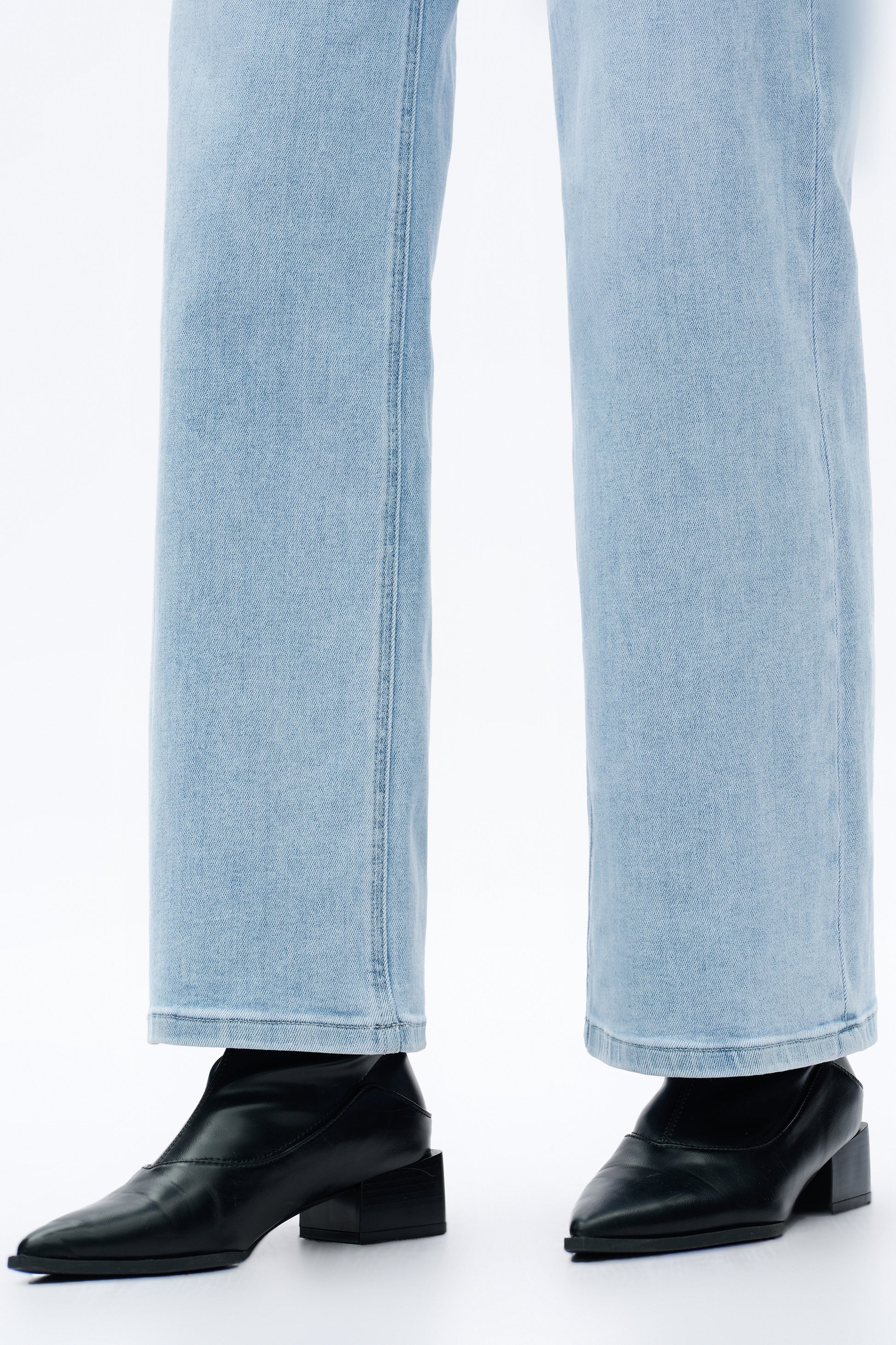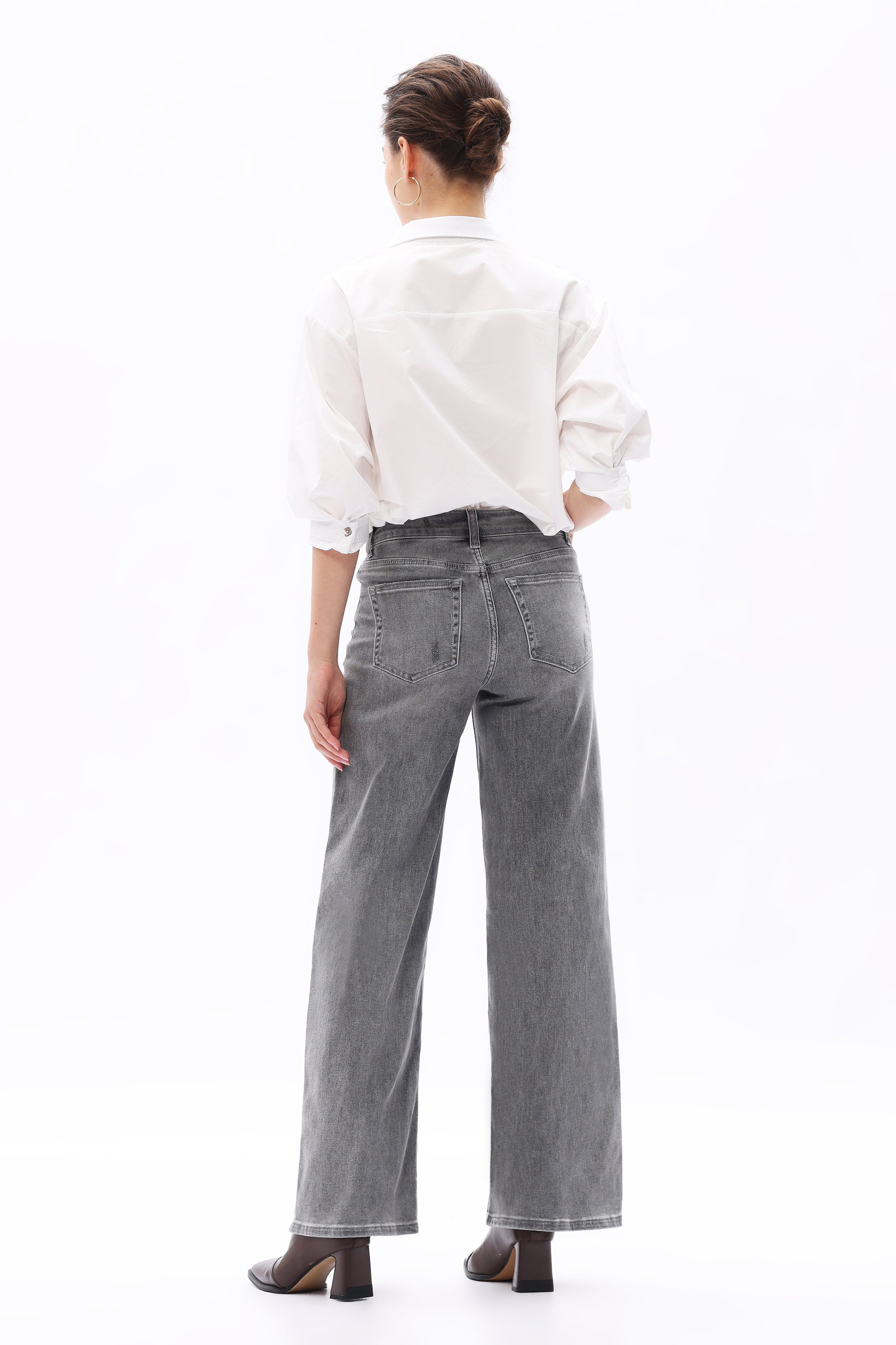 Elevate your everyday look with these Mid Rise Wide Leg Denim Jeans - a mid-rise fit meets flowy wide legs, featuring a specially designed BBL cut to enhance your curves and lift your backside, offering timeless comfort and versatile style for any outfit.